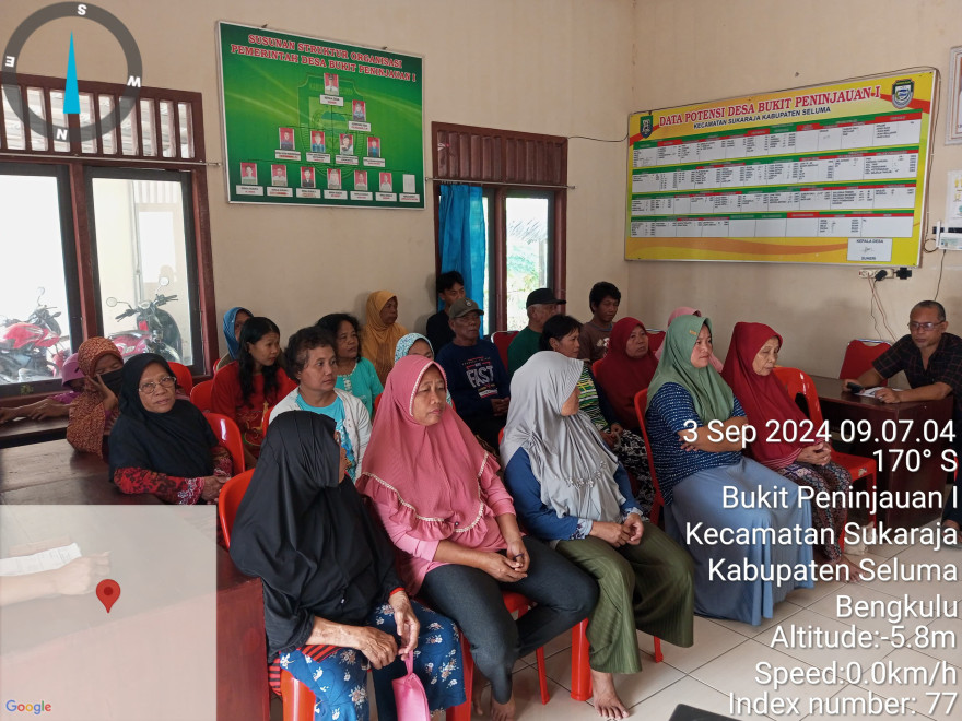 Pada Hari ini Selasa Tanggal Tiga Bulan September Tahun Duaribu Duapuluh Empat Pemerintahan Desa Bukit Peninjauan I Menyalurkan BLT Dana Desa Tahap IX di Desa Bukit Peninjauan I Kecamatan Sukaraja Kabupaten Seluma.